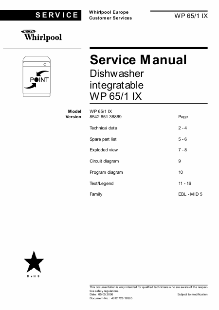 Descargar WHIRLPOOL WP 65/1 IX Manual de taller Inglés (16 Páginas) 15.90 EUR