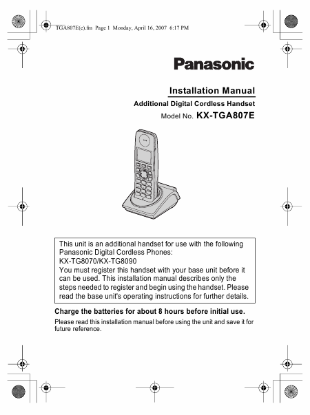 PANASONIC KX-TGA807E Installationsanweisungen Englisch