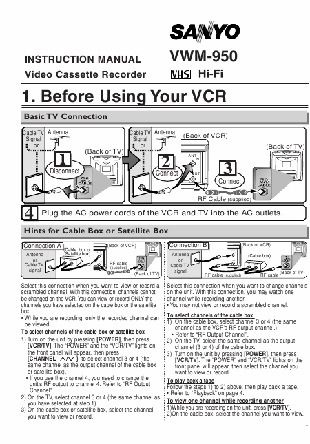 SANYO VWM-950 (VWM950) Istruzione Inglese