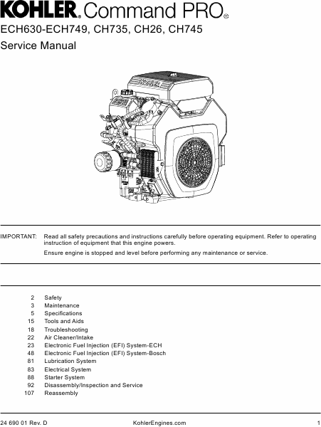 Telecharger KOHLER ECH630 Manuel de service Anglais (124 Pages) 39.90 EUR