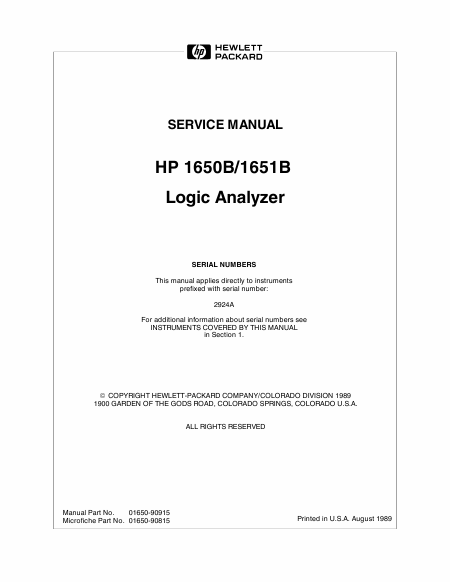AGILENT HP 1650B Serviceanleitung Englisch