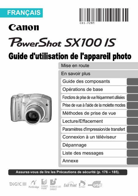 Download CANON PowerShot SX100 IS Anleitung Französisch (228 Seiten) 15.90 EUR