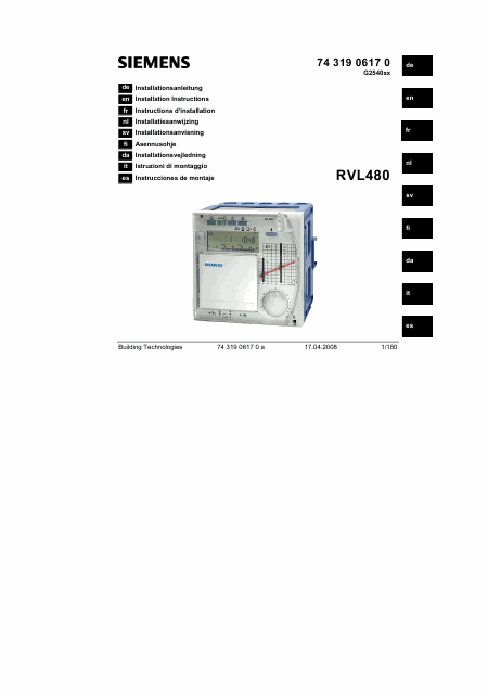 Telecharger SIEMENS RVL480 Manuel installation Allemand (20 Pages) 15.90 EUR