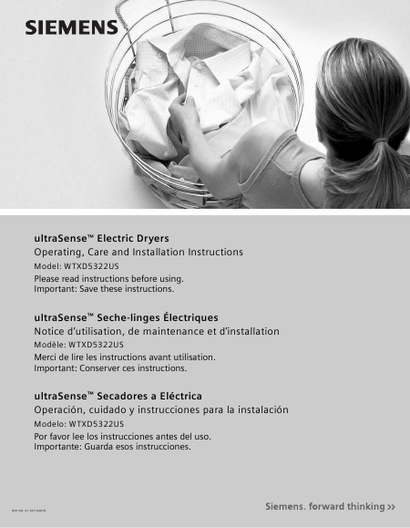 SIEMENS WTXD5322US ultraSense Istruzione Spagnolo