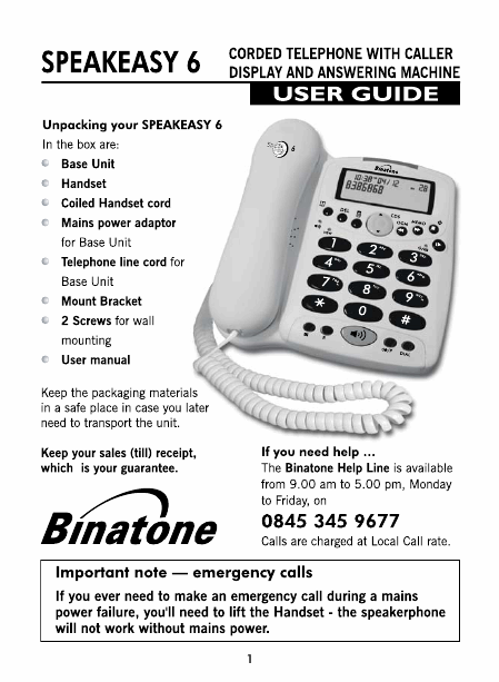 BINATONE SPEAKEASY 6 Istruzione Inglese