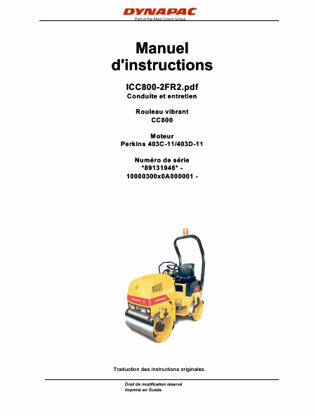 Download DYNAPAC CC800 Anleitung Französisch (98 Seiten) 39.90 EUR