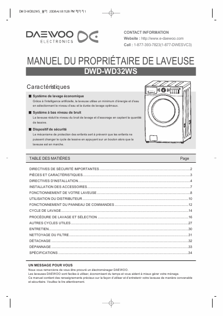 Telecharger DAEWOO DWD-WD32WS Mode emploi Français (36 Pages) 12.90 EUR