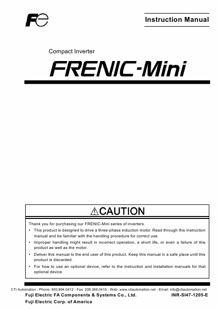 Baixar FUJI FRENIC Mini Instruções Inglês (191 Pages) 15.90 EUR