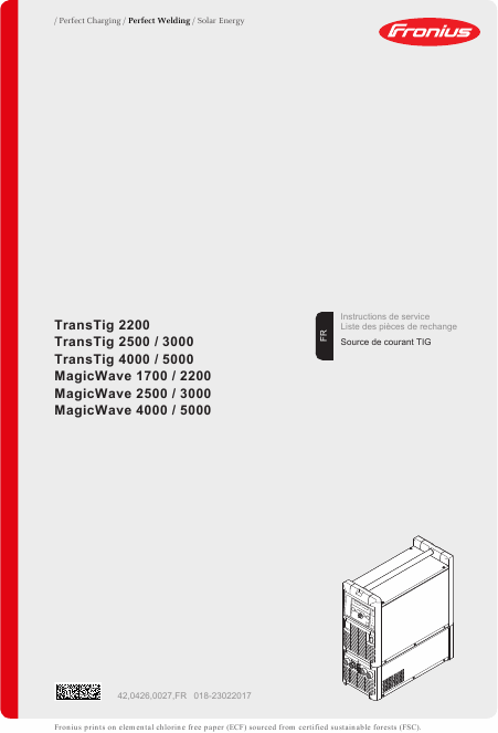 Telecharger FRONIUS TransTig 2200 Mode emploi Français (140 Pages) 39.90 EUR