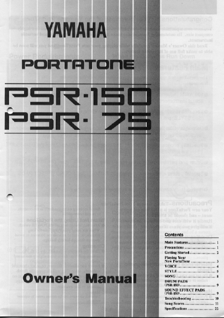 YAMAHA PSR-150 Anleitung Englisch