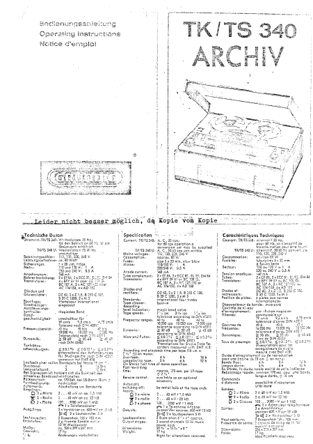 GRUNDIG TK-340 (TK340) Istruzione Inglese