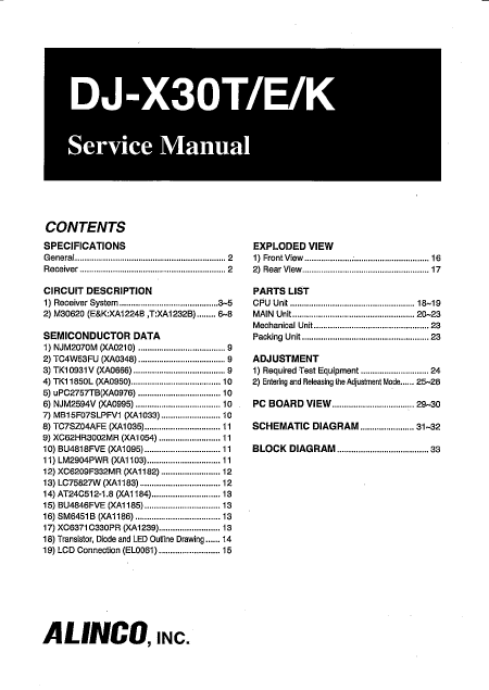 Download ALINCO DJ-X30 Service Manual English (34 Pages) 15.90 EUR