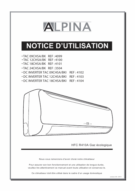 ALPINA DC INVERTER TAC 18CHSA/BKI REF : 4104 Anleitung Französisch