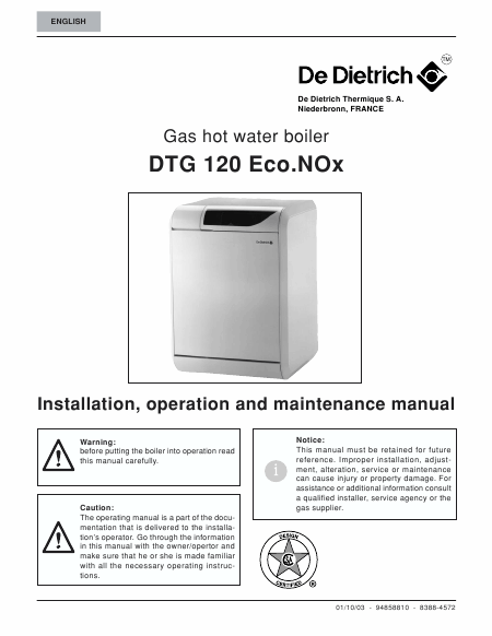 DE DIETRICH DTG 120 Eco.NOx Istruzione Inglese
