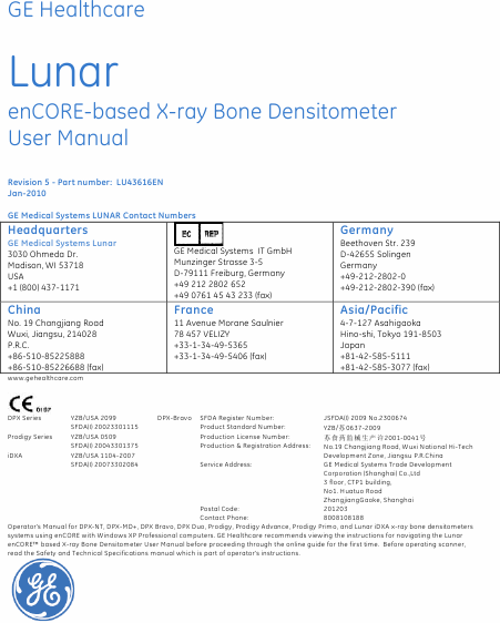Telecharger GE (GENERAL ELECTRIC) Lunar enCore V 13.5 Mode emploi Anglais (138 Pages) 39.90 EUR
