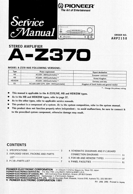 PIONEER A-Z370 (AZ370) Manual de serviço Inglês