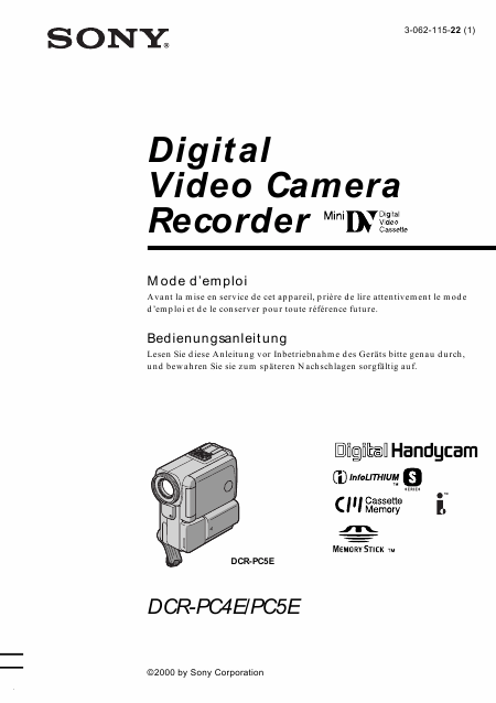 Download SONY Handycam DCR-PC5E Anleitung Französisch (200 Seiten) 12.90 EUR