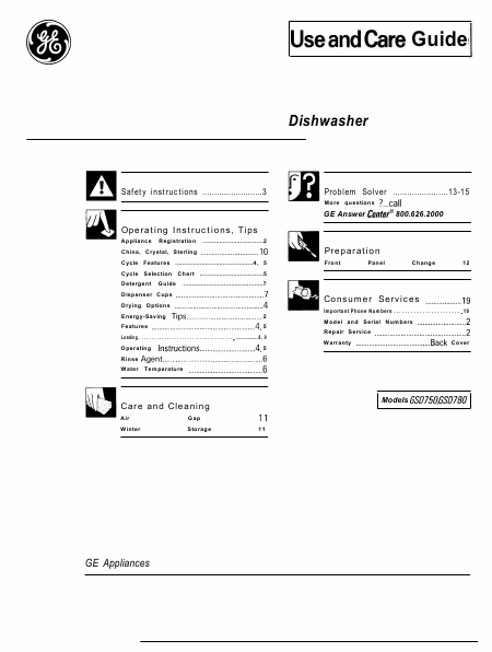 Baixar GE (GENERAL ELECTRIC) GSD 750 T (GSD750T) Instruções Inglês (20 Pages) 12.90 EUR
