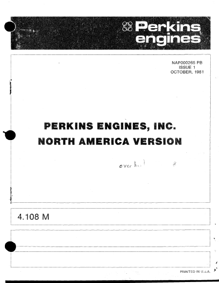 PERKINS 4.108M Lista parti di ricambio Inglese