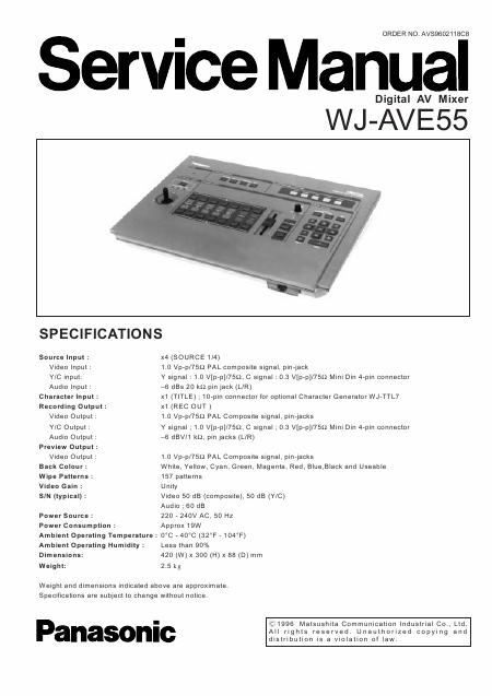 PANASONIC WJ-AVE55 Manuel de service Anglais