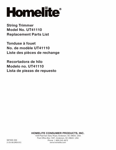 Download HOMELITE UT41110 Ersatzteile Spanisch (4 Seiten) 12.90 EUR