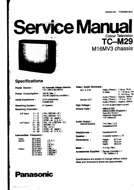 PANASONIC TC-M29 Service Manual English