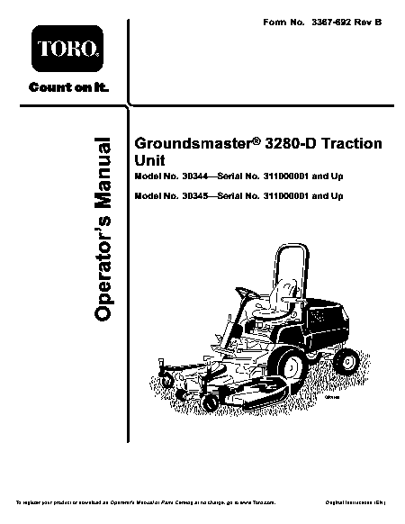 Baixar TORO Groundsmaster 3280-D 2WD (30344) Instruções Inglês (60 Pages) 15.90 EUR