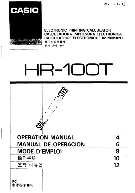 CASIO HR-100T Anleitung Englisch