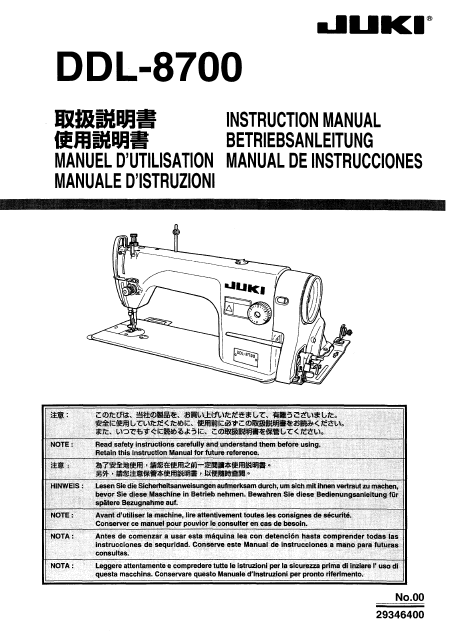 JUKI DDL 8700 Mode emploi Anglais
