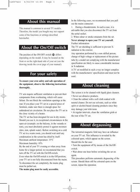 Download THOMSON TX 807 CS (TX807CS) Chassis Users Guide English (11 Pages) 15.90 EUR