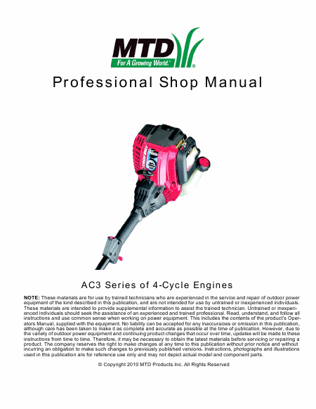 Descargar MTD AC3 Series of 4-Cycle Engines Manual de taller Inglés (68 Páginas) 15.90 EUR