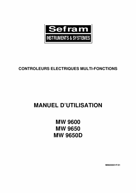 SEFRAM MW 9600 Anleitung Französisch