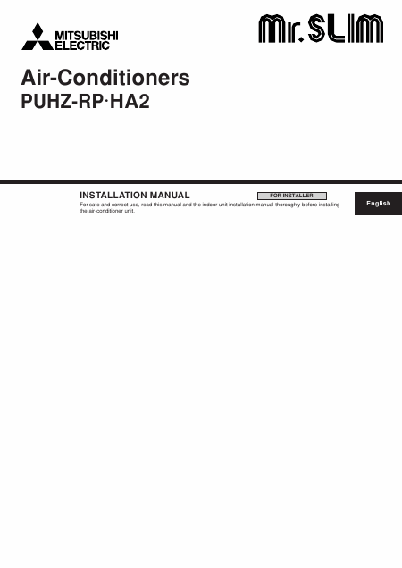 MITSUBISHI ELECTRIC PUHZ-RP HA2 Installationsanweisungen Englisch