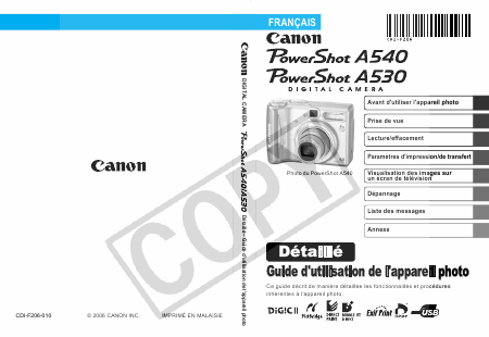 Telecharger CANON PowerShot A530 / A540 Mode emploi Français (139 Pages) 15.90 EUR