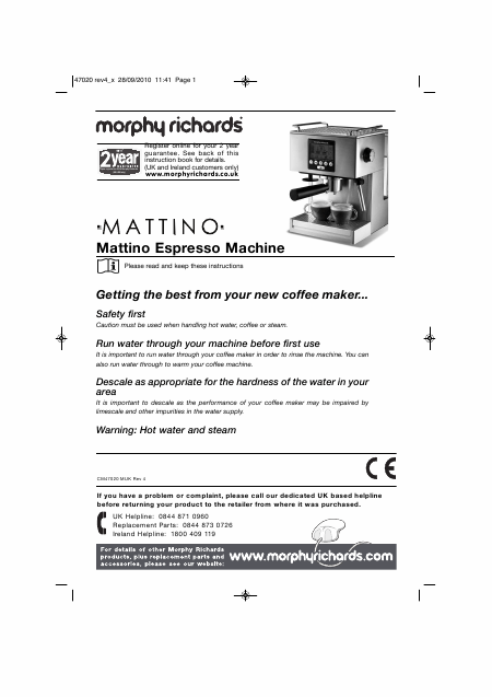Telecharger MORPHY RICHARDS Mattino Mode emploi Anglais (16 Pages) 12.90 EUR