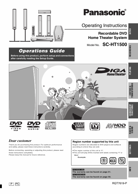 PANASONIC SA-HT1500 (SAHT1500) Anleitung Englisch