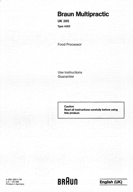 Descargar BRAUN Multipratic UK 285 (Type 4262) Guía del usuario Inglés (11 Páginas) 12.90 EUR