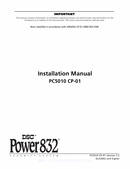 DSC PC 5010 (PC5010) Power 832 Manuel installation Anglais
