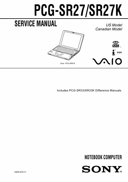 Download SONY PCG-SR27K Service Manual English (90 Pages) 39.90 EUR