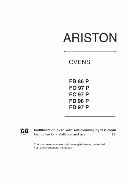 ARISTON FB 86 P Istruzione Inglese