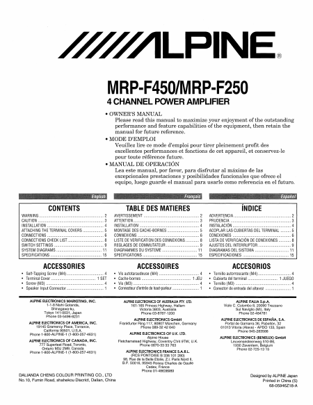 ALPINE MRP-F450 Anleitung Englisch