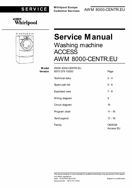 WHIRLPOOL AWM 8000-CENTR.EU Manual de taller Inglés