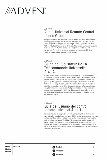 Download ADVENT ADR460 Users Guide French (3 Pages) 12.90 EUR