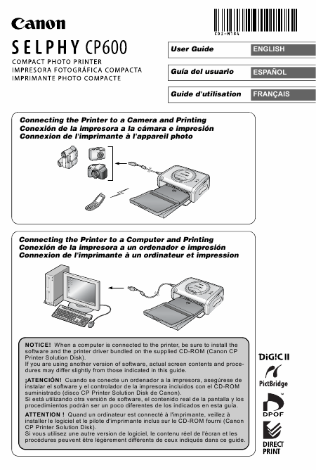 Download CANON Selphy CP600 Users Guide French (0 Pages) 12.90 EUR
