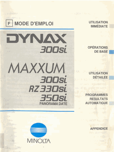 KONICA MINOLTA Maxxum RZ330si / 350si Users Guide French