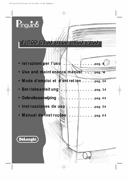 DELONGHI PAC F15 ECO Pinguino Istruzione Inglese