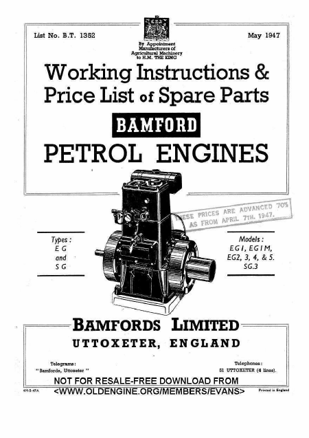 BAMFORD EG / SG Lista de piezas de repuesto Inglés
