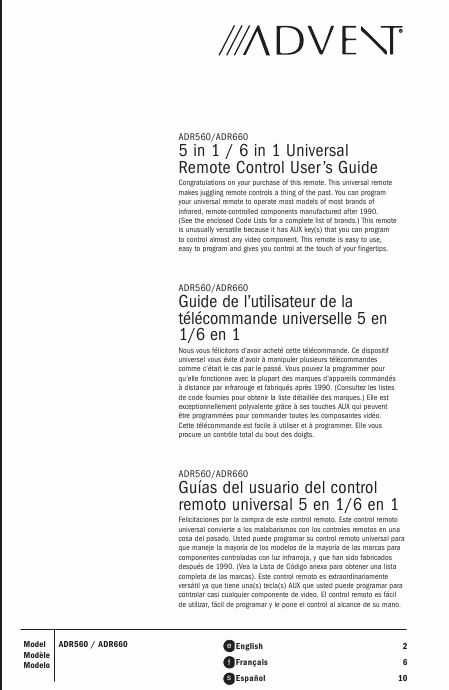 Download ADVENT ADR560 Users Guide English (4 Pages) 12.90 EUR