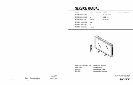 SONY PFM-500xxxx / PFM-510xxxx Anleitung Englisch