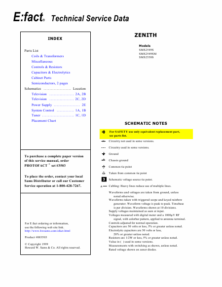 Download ZENITH SMS2549SM Schaltpläne Englisch (14 Seiten) 15.90 EUR